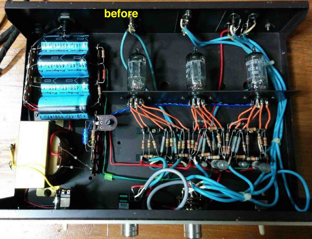 真空管式 プリ&コントロール アンプ 上の白いやつです(元は三栄のキットでしたが,作り替えております)