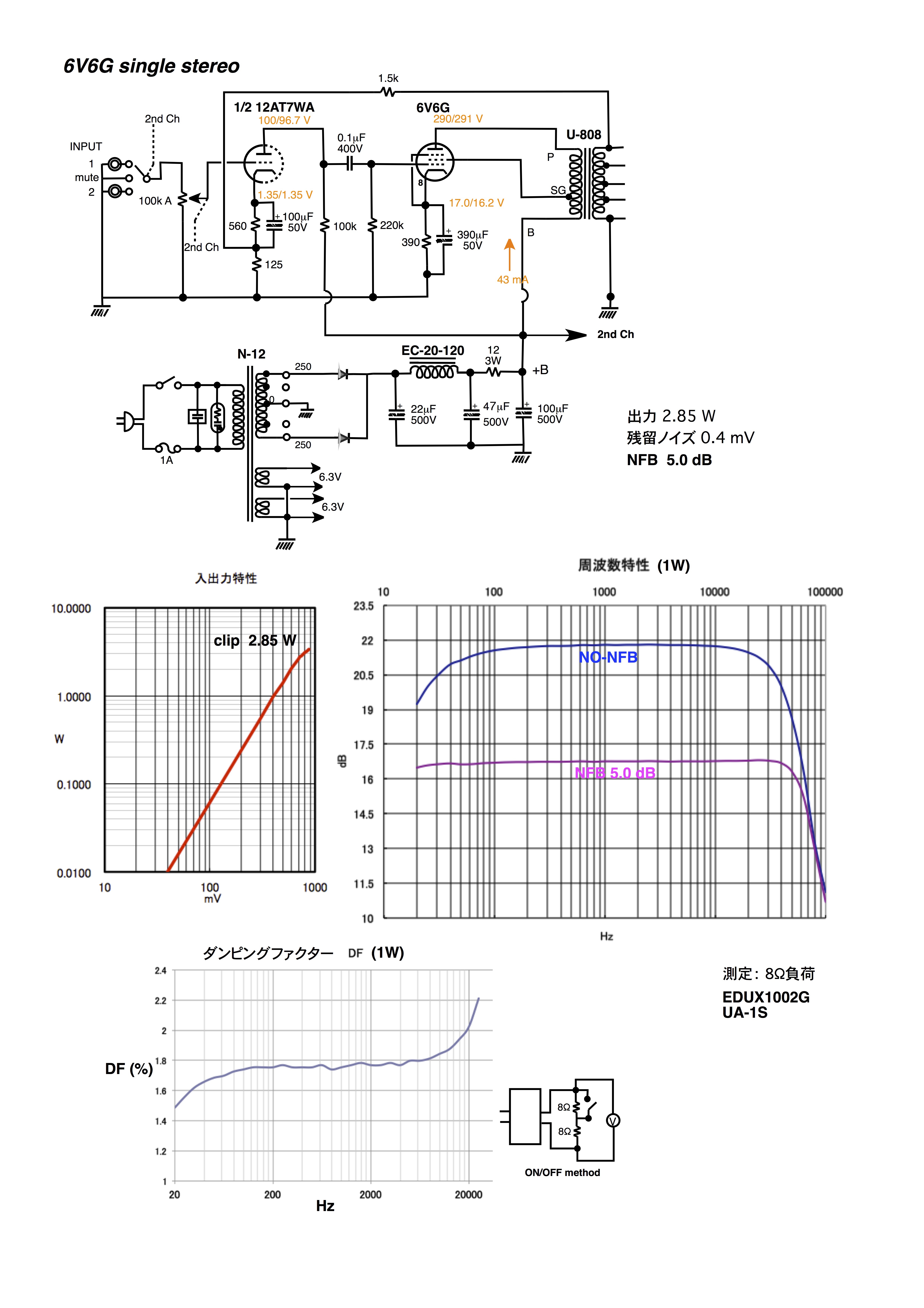 測定:トランスは春日OUT-54B-57での測定です。(UA-1S & CTO-2020使用)